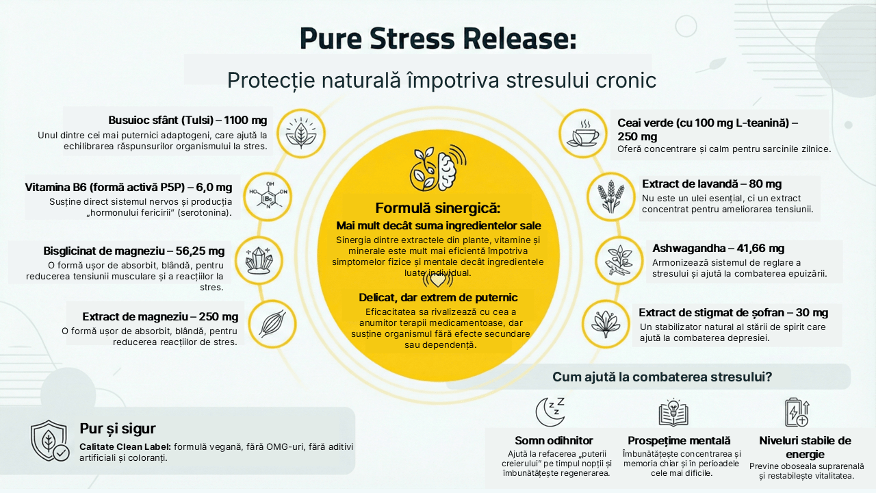 Pure Stress Release este o alegere excelentă pentru cei care caută o soluție naturală și echilibrată pentru gestionarea stresului și susținerea stării de bine.